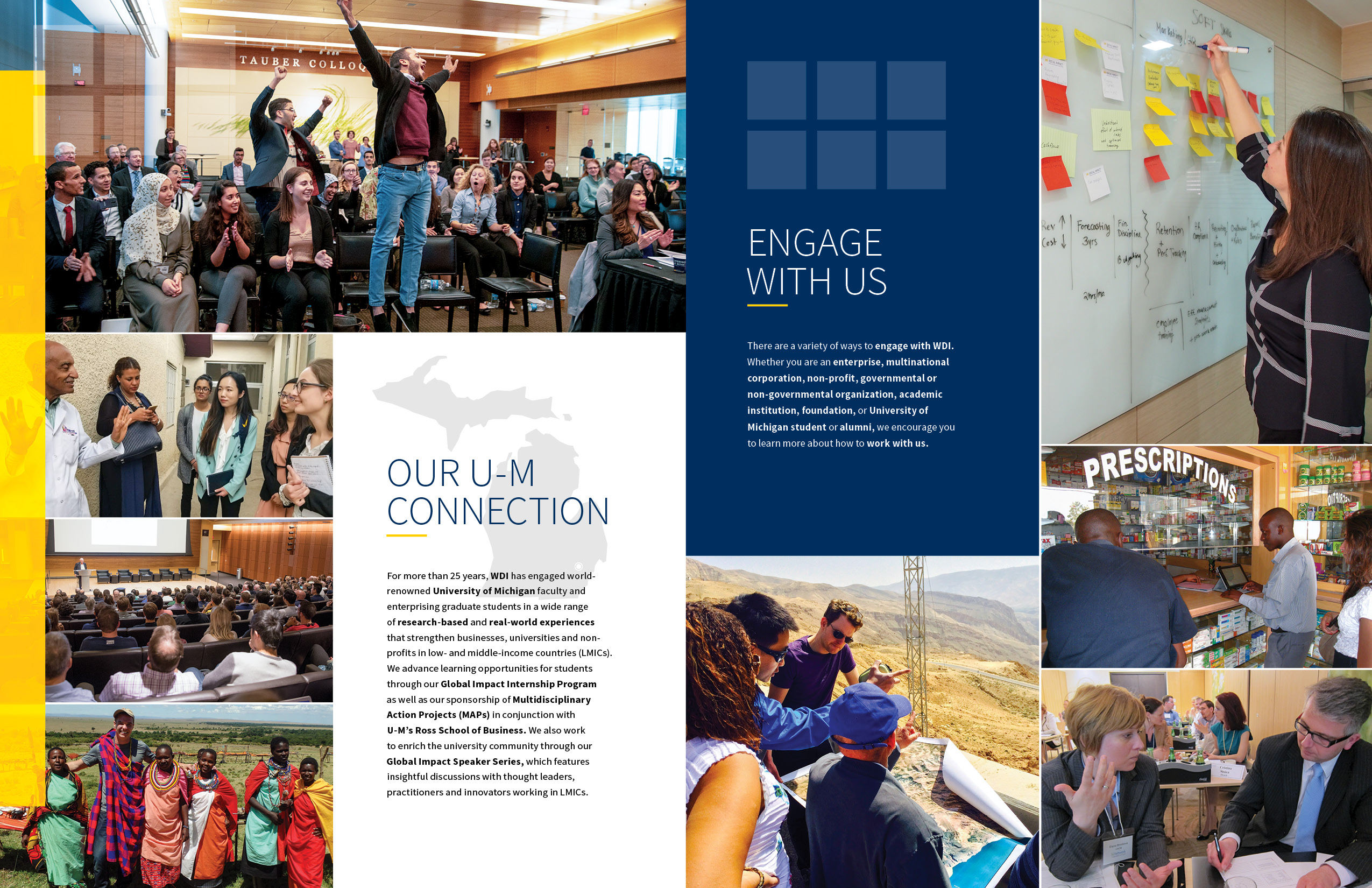 Created an 8-page brochure for the William Davidson Institute (WDI) to provide a high-level overview of the institute’s work. The brochure was designed for use at conferences and events to engage audiences and inform potential partners and stakeholders.